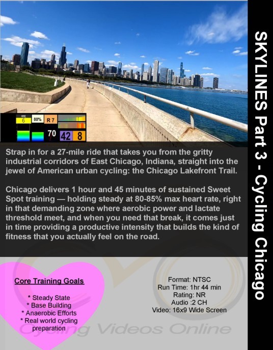 Kaywords: Indoor cycling workout video, virtual bike ride Chicago, Chicago Lakefront Trail cycling, indoor training video, sweet spot cycling workout, virtual cycling tour, bike trainer video, Chicago skyline bike ride, urban cycling video, indoor cycling scenery, cycling workout 1 hour 45 minutes, virtual ride along, POV cycling video, bike trainer scenery video, threshold training cycling, indoor bike workout, virtual cycling Chicago, cycling videos online, real road cycling video, aerobic cycling workout
