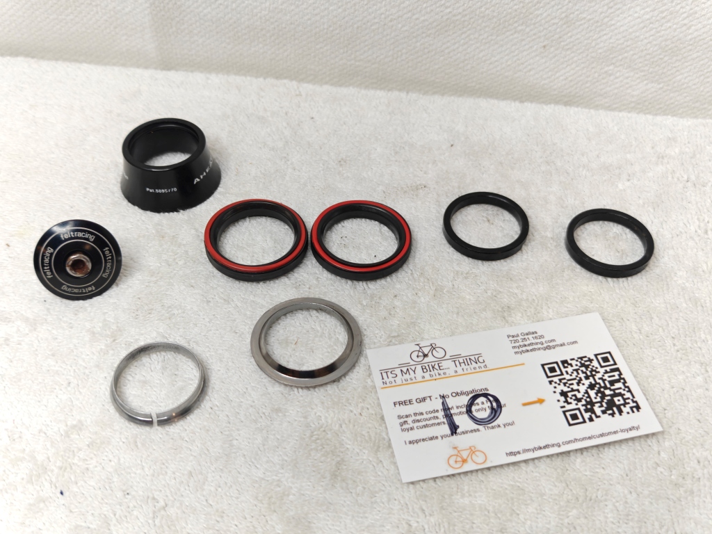 Keywords: Cane Creek, Aheadset, IS41, integrated, headset, 1-1/8, threadless, 41mm, 45 degree, road bike, crown race, spacers, black
