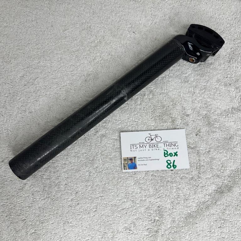 Notes from MyBikeThing This carbon fiber seatpost features lightweight construction with excellent vibration damping properties for enhanced ride comfort. The carbon weave provides strength while reducing weight compared to aluminum alternatives. What sets it apart is the superior compliance that smooths road vibrations while maintaining excellent stiffness for efficient power transfer.