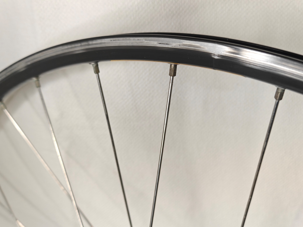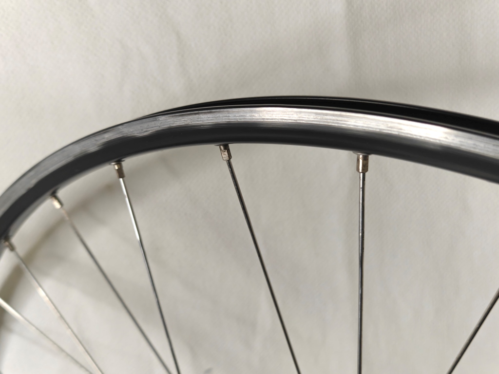 • Brake Surface: Easton’s textured brake track with integrated rim profile—narrower than traditional machined surfaces, grooved for consistent pad contact while maintaining aerodynamic rim shape. Very good condition with cosmetic brake wear only