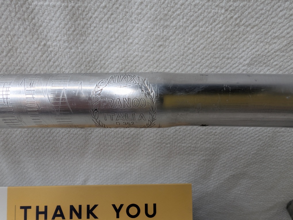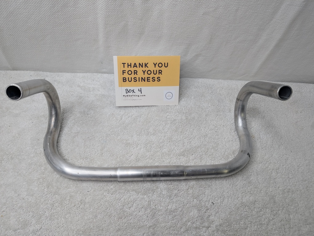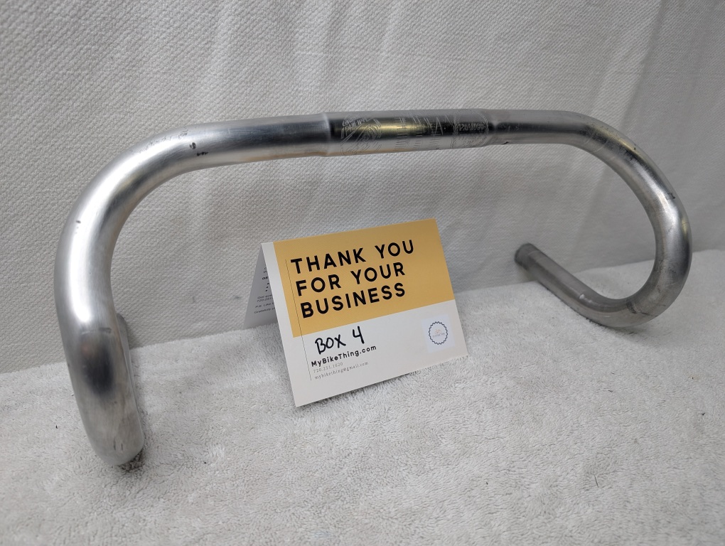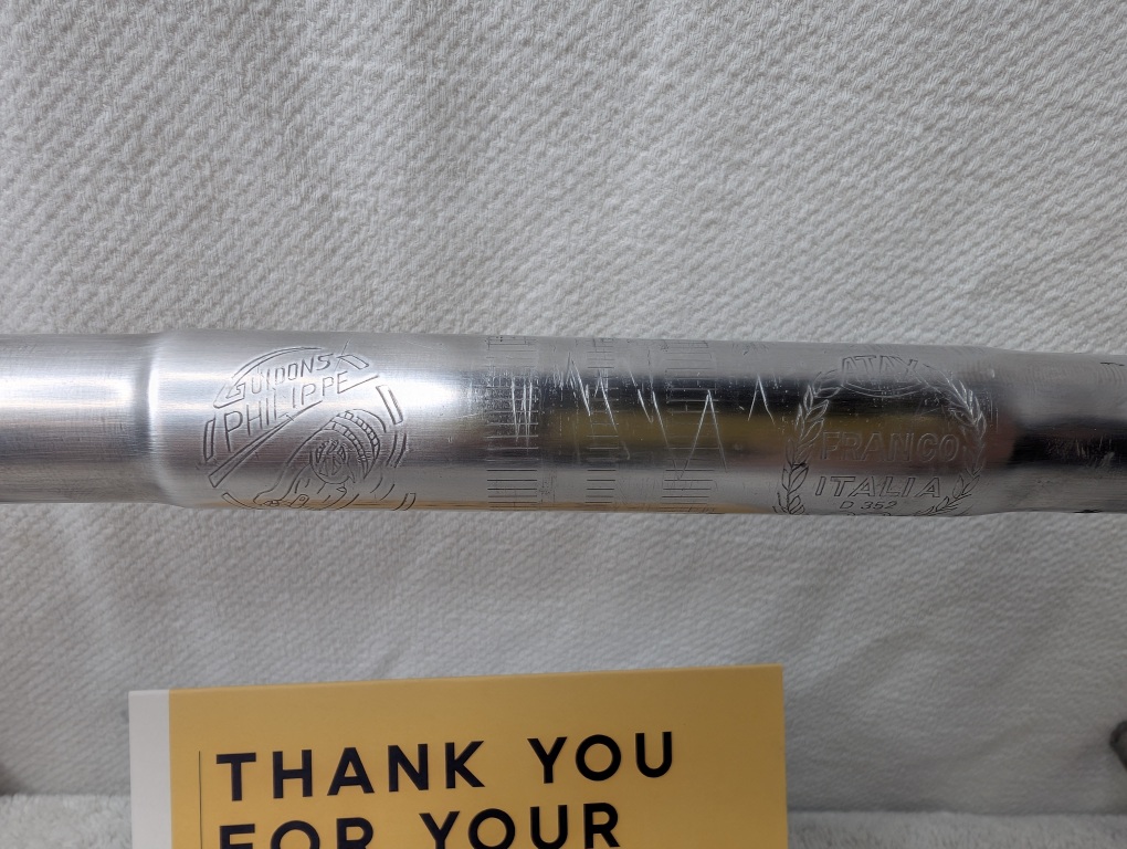 Condition: Better than expected for vintage aluminum bars – these show honest cosmetic wear with scuffs and scratches The signature engraved logos and graphics are still crisp and legible, which is rare to find intact. Surface finish has patina typical of 1970s-80s French components. All tape adhesive residue has been cleaned away.