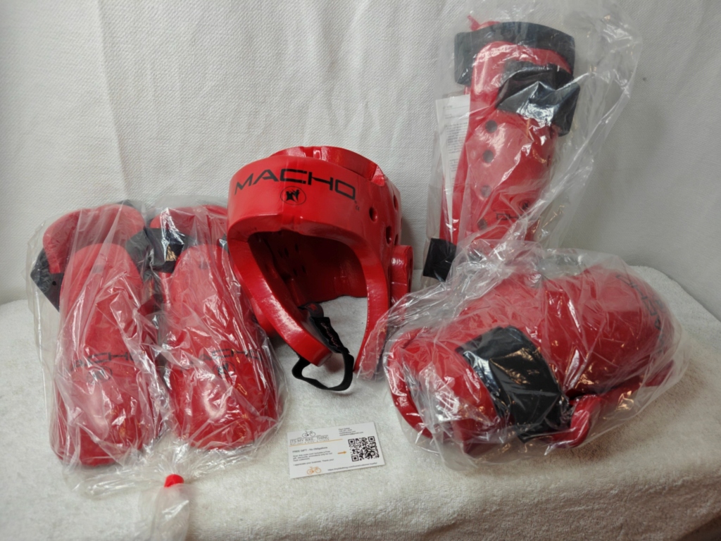 sparring gear, sparring set, sparring equipment, Macho sparring gear, Macho Dyna, Macho Dyna Kicks, shin guards, head gear, gloves, karate gloves, martial arts gloves, foam sparring gear, 3/4 inch foam, sparring set, full sparring set, sparring kit, karate sparring gear, taekwondo sparring gear, martial arts sparring gear, kids sparring gear, adult sparring gear, youth sparring gear, white sparring gear, blue sparring gear, red sparring gear, black sparring gear, children’s sparring gear, XL sparring gear, protective gear, karate protective gear, martial arts protective gear, contact sparring gear