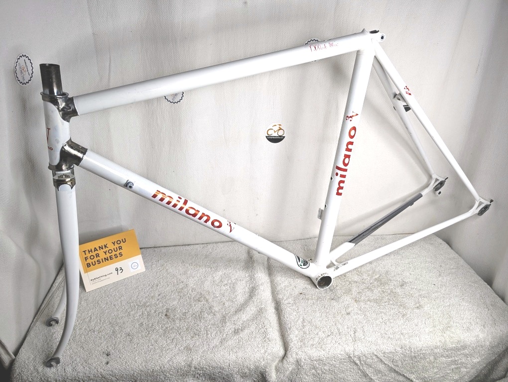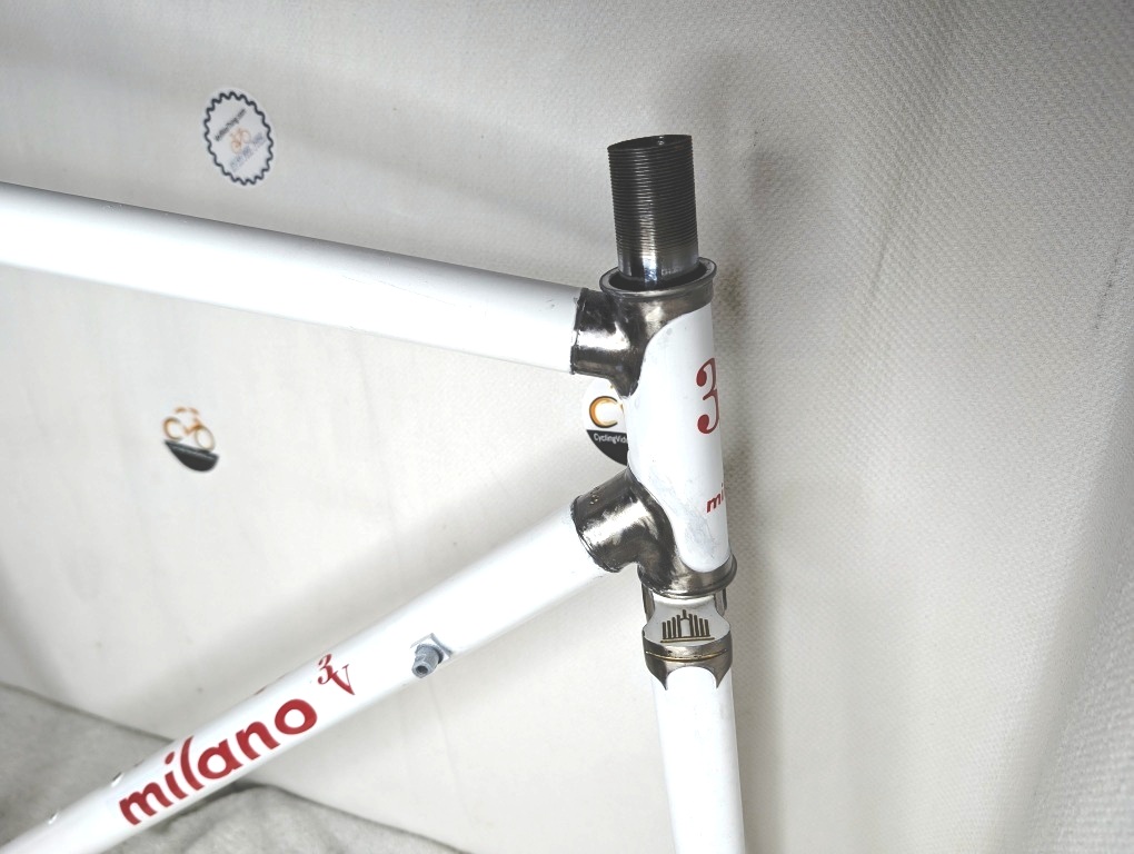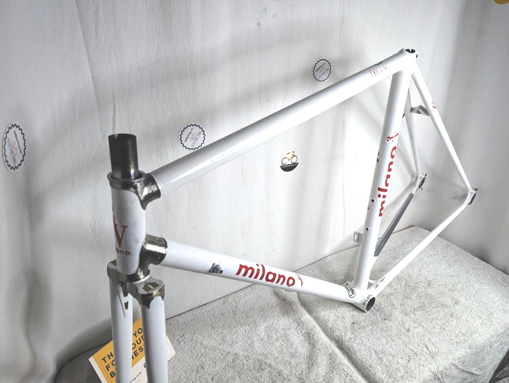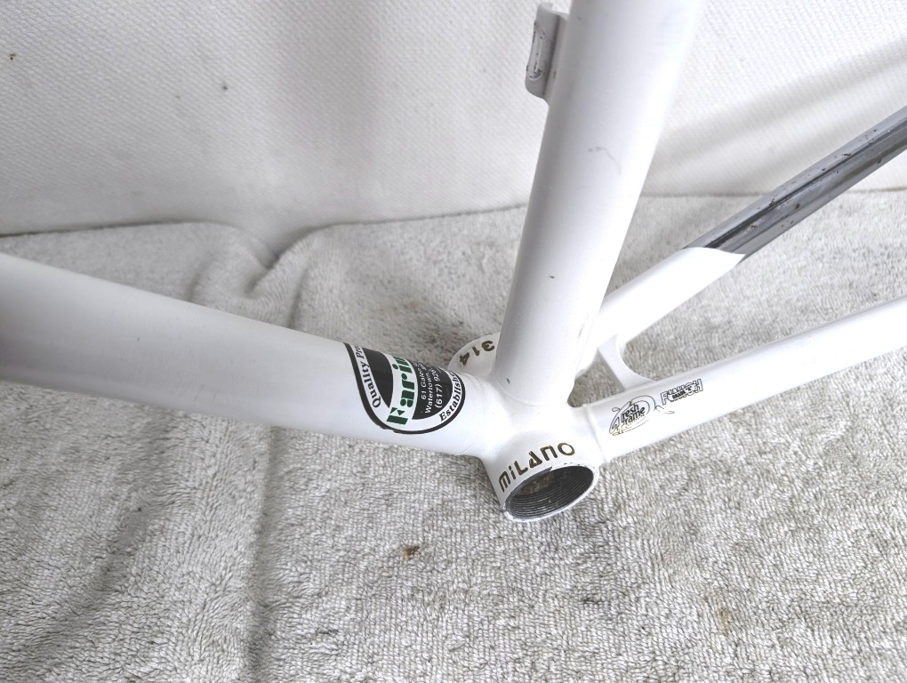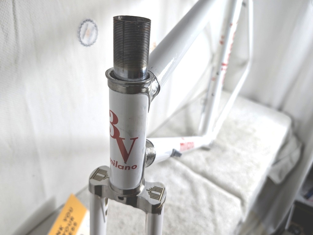 milano, 3v, masi, alberto, steel, frame, fork, 53cm, medium, road, vintage, internal, lugs, oversized, pearl, white, chrome, italian, threading, innovation, classic, handmade, volumetrica, 314