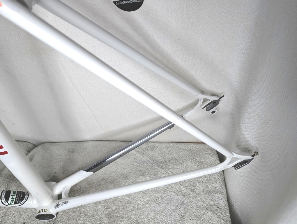 At the seat tube cluster and bottom bracket, you can see the seamless junctions where larger diameter tubes slip over the reinforced sections – Alberto’s revolutionary internal lug system that started the oversized tube revolution.