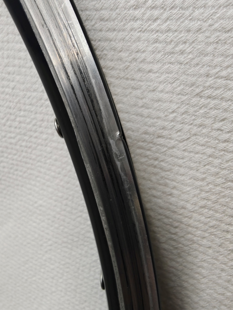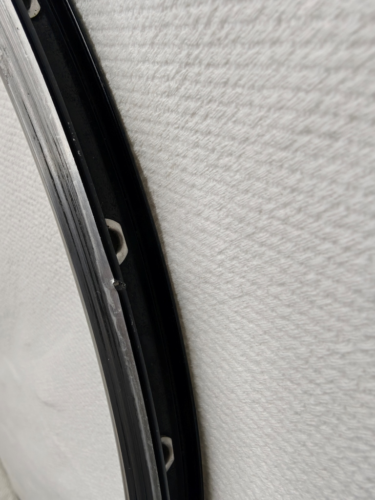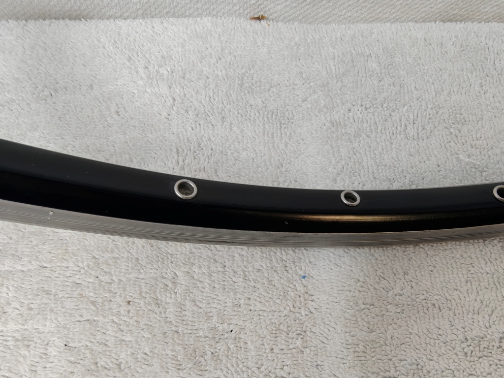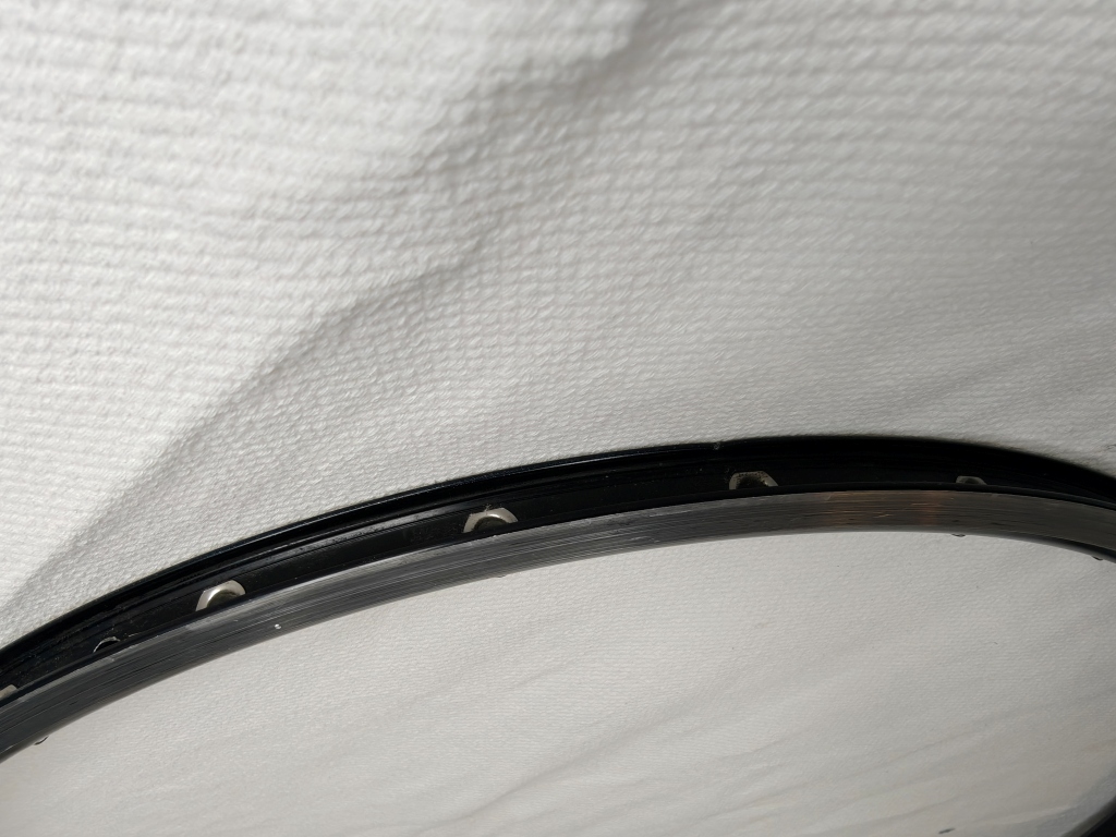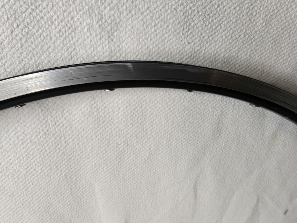 Notes from MyBikeThing: If you know, you know. The Mavic Open Pro is arguably the most respected road rim ever made — the gold standard for custom wheel builds spanning decades. This one came to us without its labels, but we’ve handled enough Open Pros to know one when we see one. The weight (440g), 20mm outer width, 18.5mm depth, double stainless eyelets, machined brake track, and overall profile all match Open Pro specs. We compared it side-by-side with labeled Open Pros in our shop and it’s the same rim.