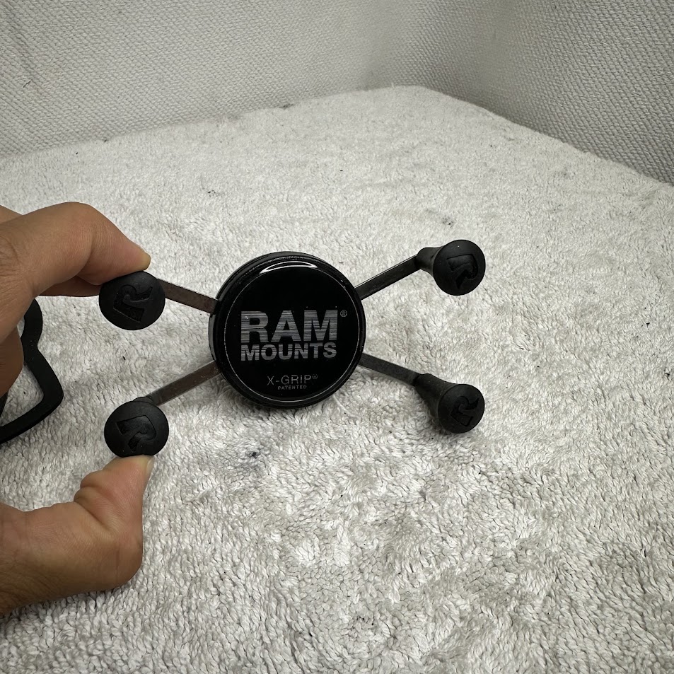 Notes from MyBikeThing The spring-loaded RAM X-Grip cradle expands and contracts to provide a perfect fit for your device while keeping it fully functional. The RAM ball and socket technology allows for near-infinite adjustability to achieve the ideal viewing angle – essential for any serious phone mounting setup.