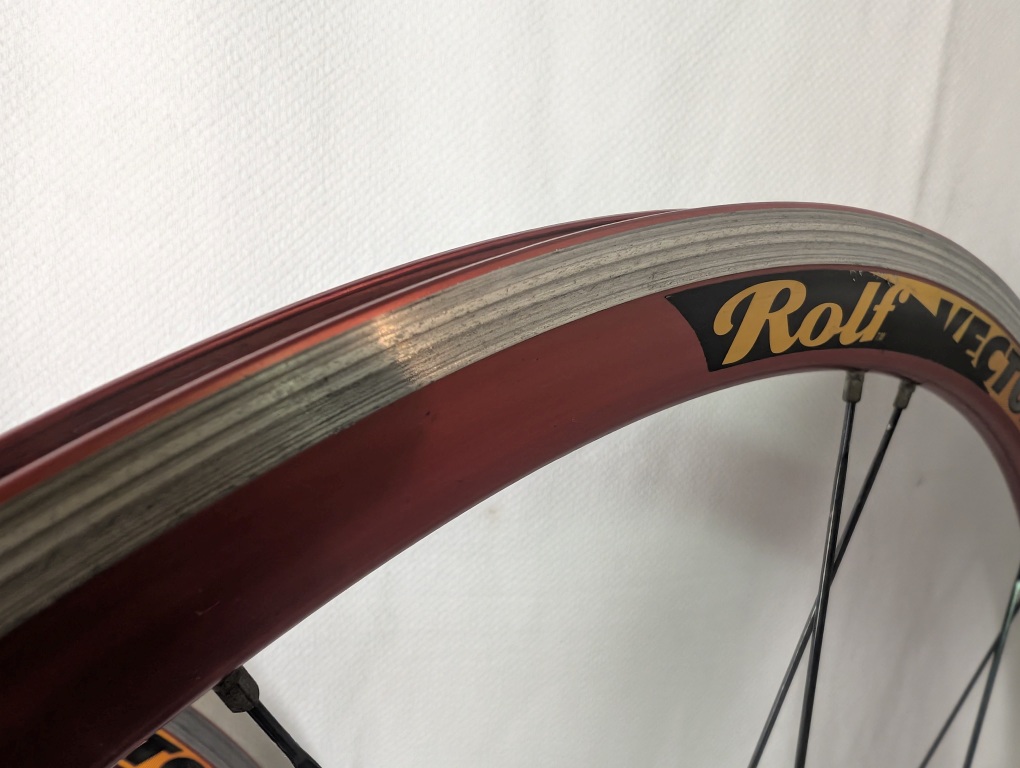- Rims: Rolf Vector Comp, 700c, red anodized aluminum, 18.25mm external width
