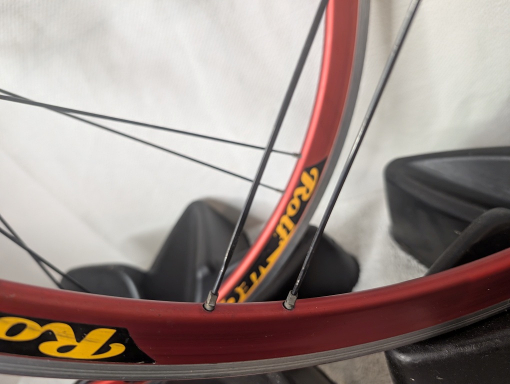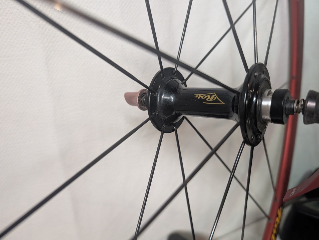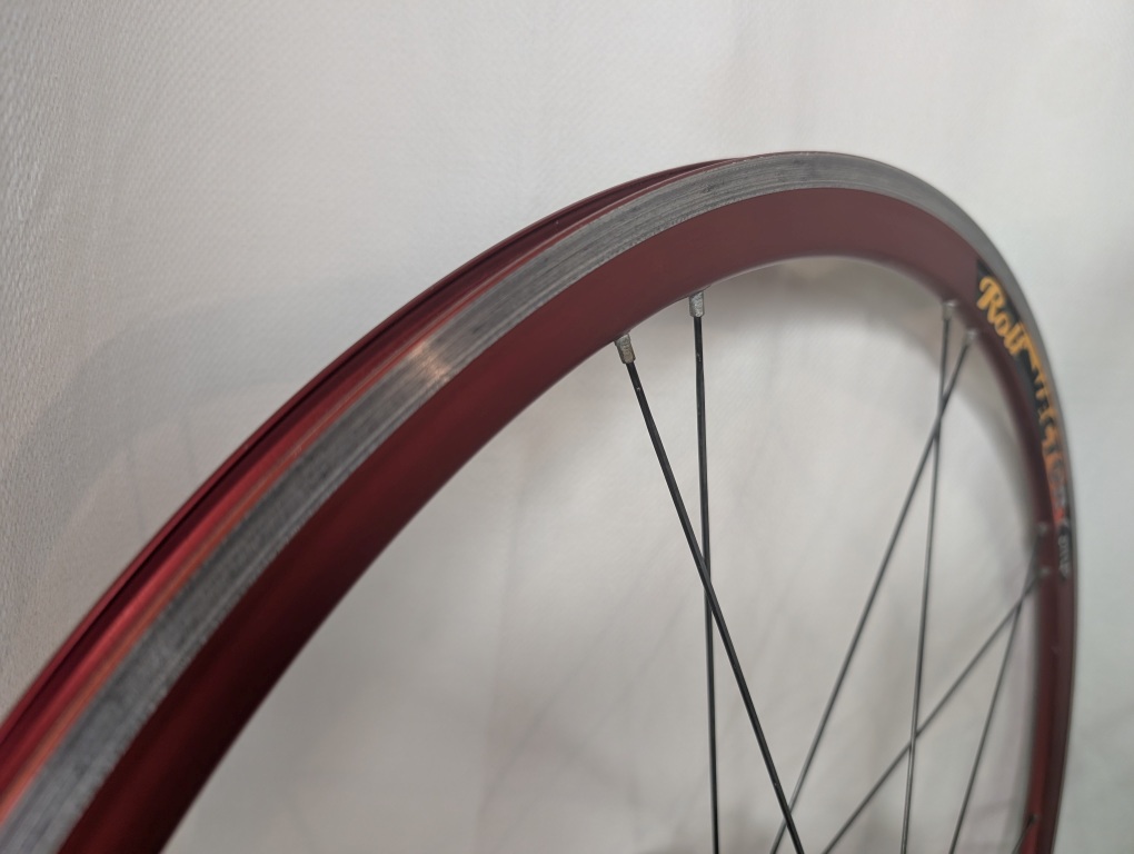 These wheels deliver that unique Rolf character—responsive acceleration from the low spoke count, confident stiffness from the paired-spoke design, and surprisingly smooth bearings that spin freely. The red anodized rims aren’t just aesthetic; they’re a statement that you ride something different, something with heritage. While Rolf wheels have a reputation for being “bombproof” once they’re rolling, they’re also known for their distinctive feel—stiff, direct, and fast. This is more than just a wheelset—it’s a piece of cycling history from the era when American innovation was rewriting the rulebook.