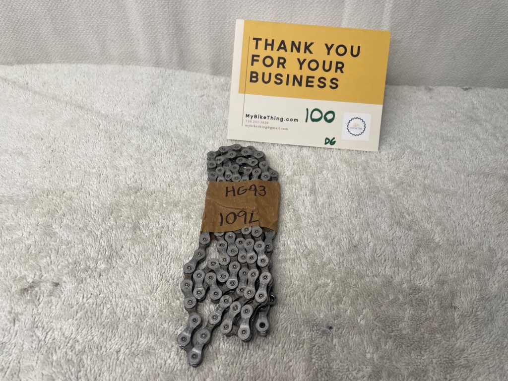 Notes from MyBikeThing: The CN-HG93 is Shimano’s solid performance oriented chain – what came stock on Ultegra and XT builds. It’s the sweet spot between cheap chains that skip and expensive chains you’re afraid to ride.