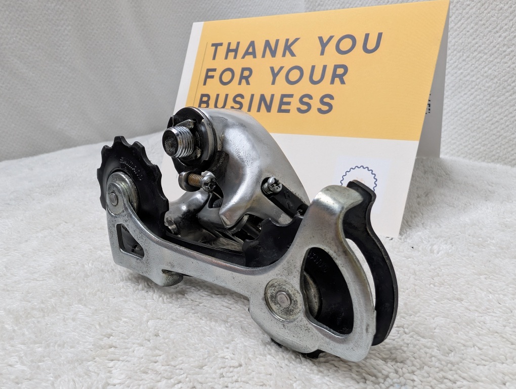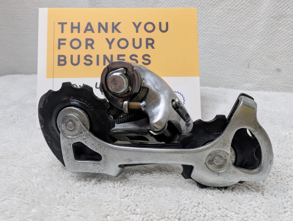 Condition: Very good overall with only minor cosmetic scuffs from normal use. The pulley wheels spin freely and show minimal wear – no wobble or roughness. Body finish has light surface marks but nothing significant. All pivots move smoothly with proper spring tension. This is a clean example ready to bolt on and ride.