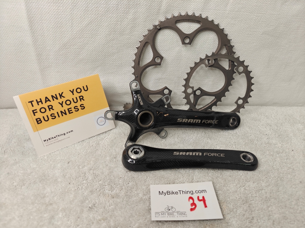 Notes from MyBikeThing: This is proper SRAM Force carbon—light, stiff, and reliable. The 50/34 compact gearing gives you climbing legs without sacrificing top-end speed. We threw in the freshly serviced GXP bottom bracket so you’re ready to install and ride.