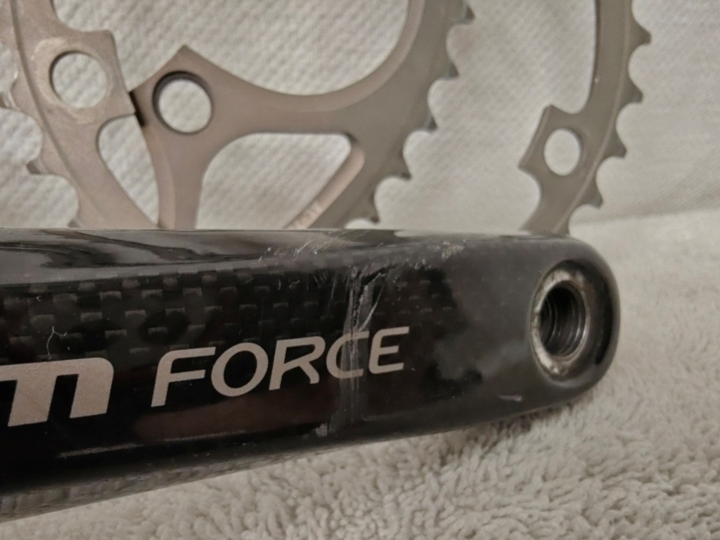 Keywords: SRAM Force, carbon crankset, 175mm, 50/34T, compact, 10-speed, GXP bottom bracket, 110mm BCD, road bike, double chainring, aluminum chainrings, Force 10spd
