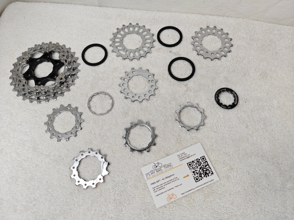 - Complete — all cogs, spacers, and lockring included