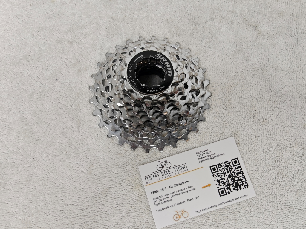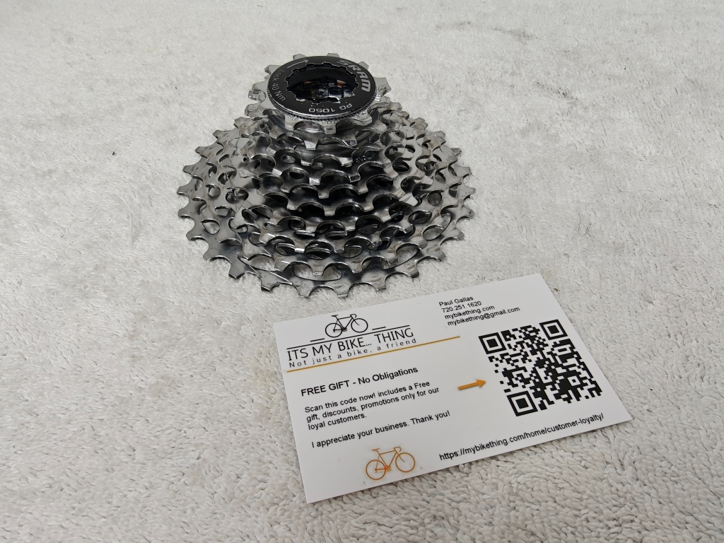Keywords SRAM PG-1050, 10 speed cassette, 14-28t cassette, Shimano HG freehub, 10 speed road cassette, SRAM PowerGlide cassette, triple crankset cassette, 10 speed compatible, road bike cassette, used cassette