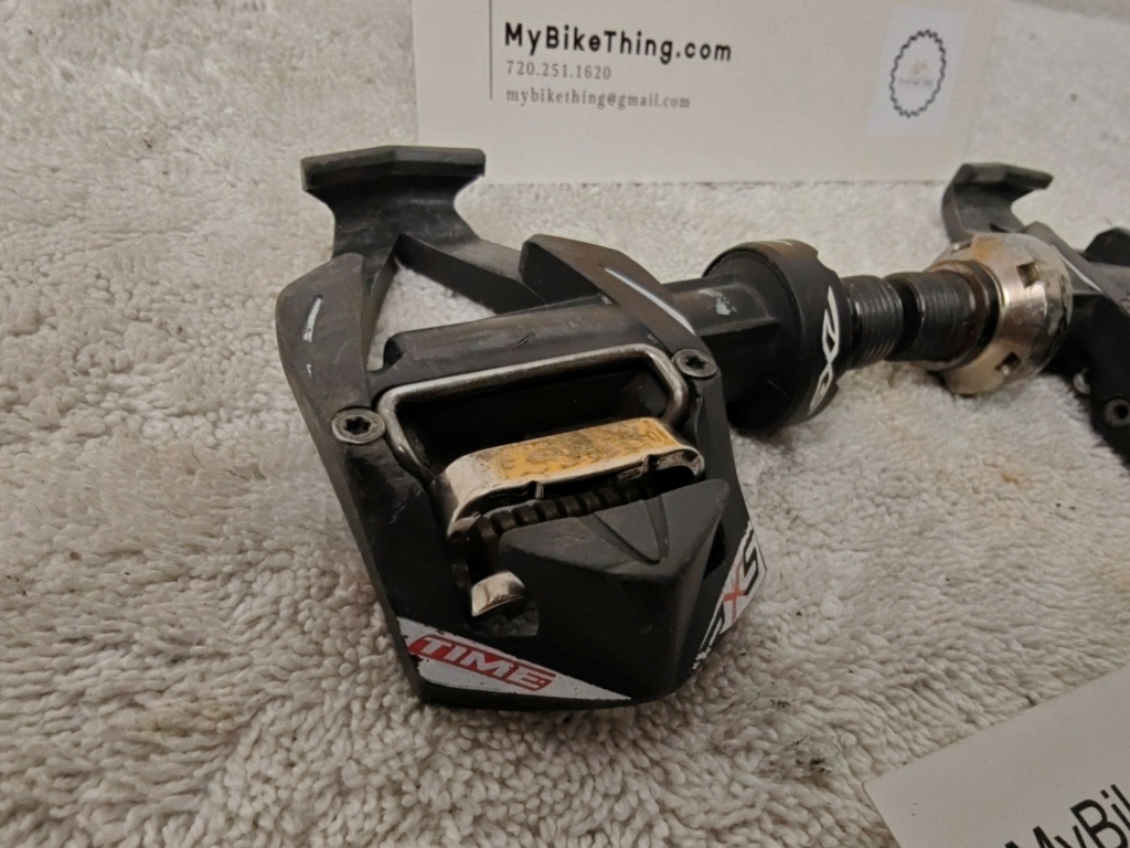 Notes from MyBikeThing: Time ATAC RXS Carbon—French-made with that legendary float and mud-shedding design that made ATAC the cyclocross standard. Carbon composite bodies keep weight down. These work flawlessly despite the miles they’ve seen.
