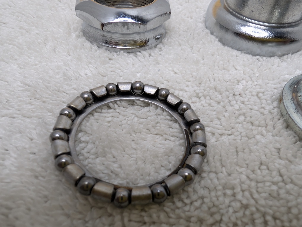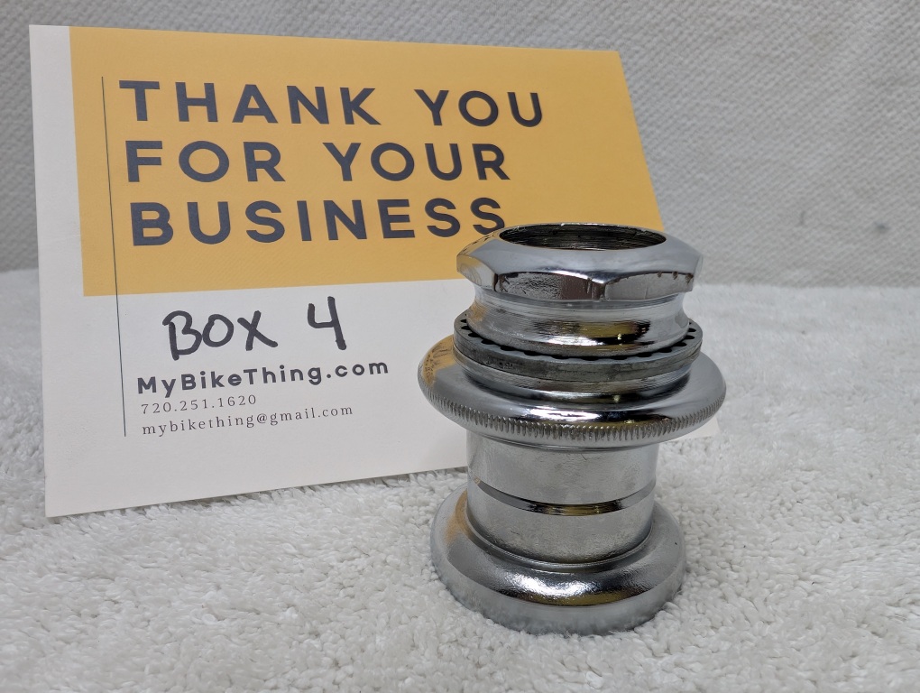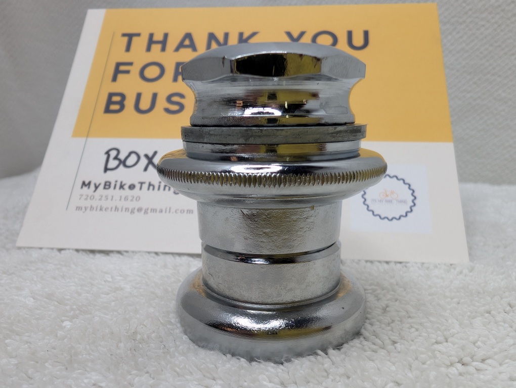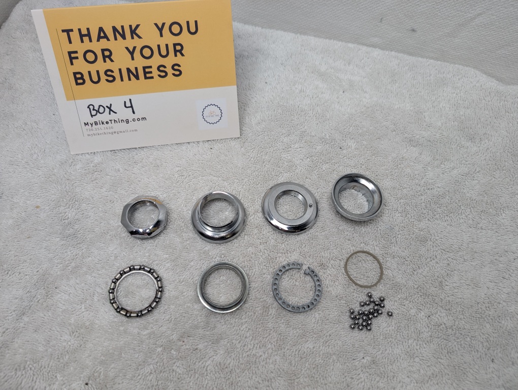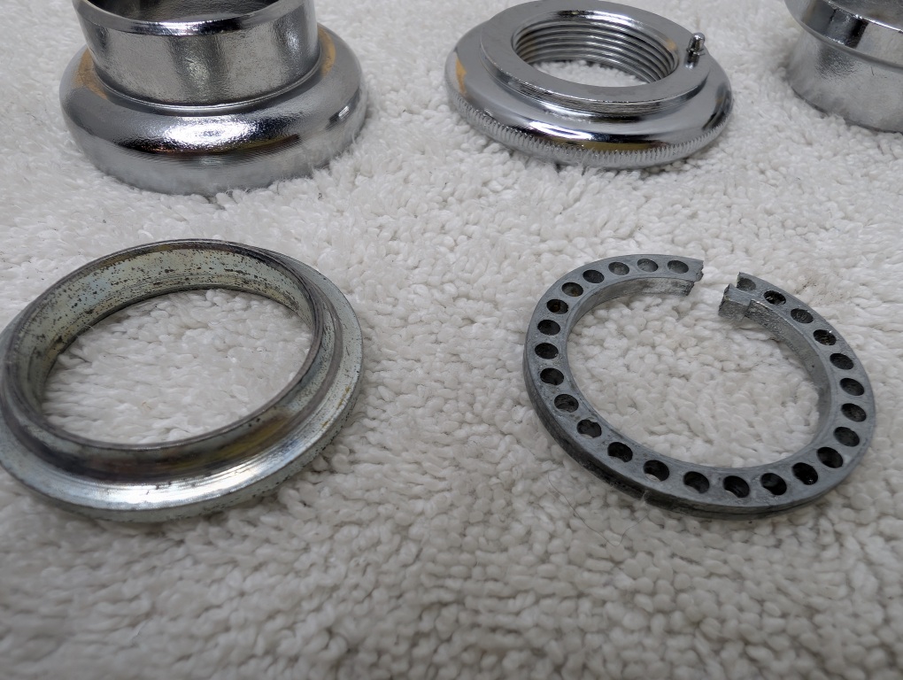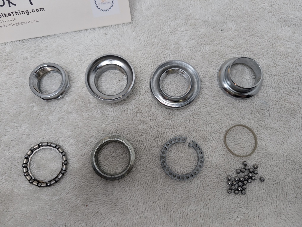 1 inch headset, threaded headset, vintage headset, steel headset, 25.4mm headset, 30mm cups, BSC headset, ISO headset, vintage bicycle parts, road bike headset, touring bike headset, classic bike restoration, French bike parts, vintage bike rebuild, complete headset, BMX