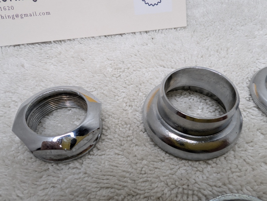 Condition: Excellent with minimal use. All threads are clean and sharp. Races show minimal wear. Lock washer was split, but functions like it should. Complete set with all hardware.