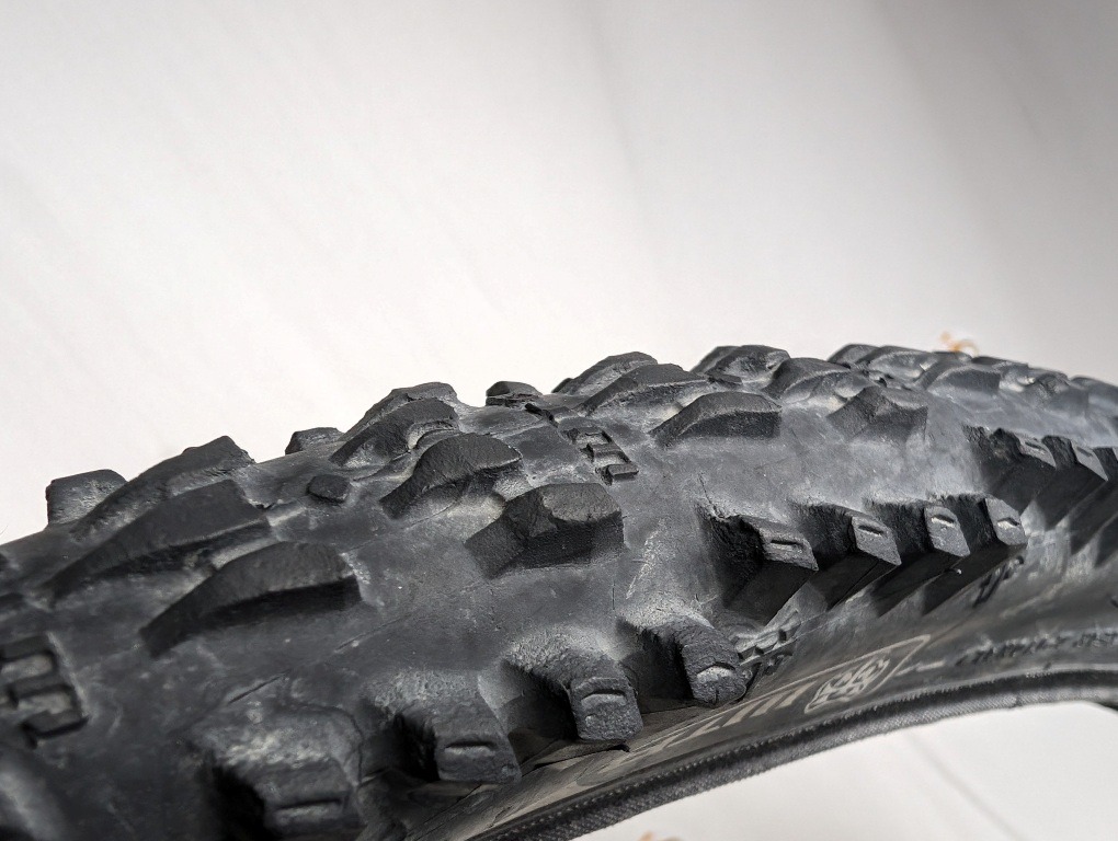 Mark Weir’s signature model, the WeirWolf, is built to carve aggressive singletrack. Lean into corners with confidence knowing that the large, transitional openings between knobs channel soil outward, while the ramped, claw-like center tread provides pro-level traction in all terrain types. Unique tread pattern has amazing braking ability and provides stable cornering treads about 1/4″